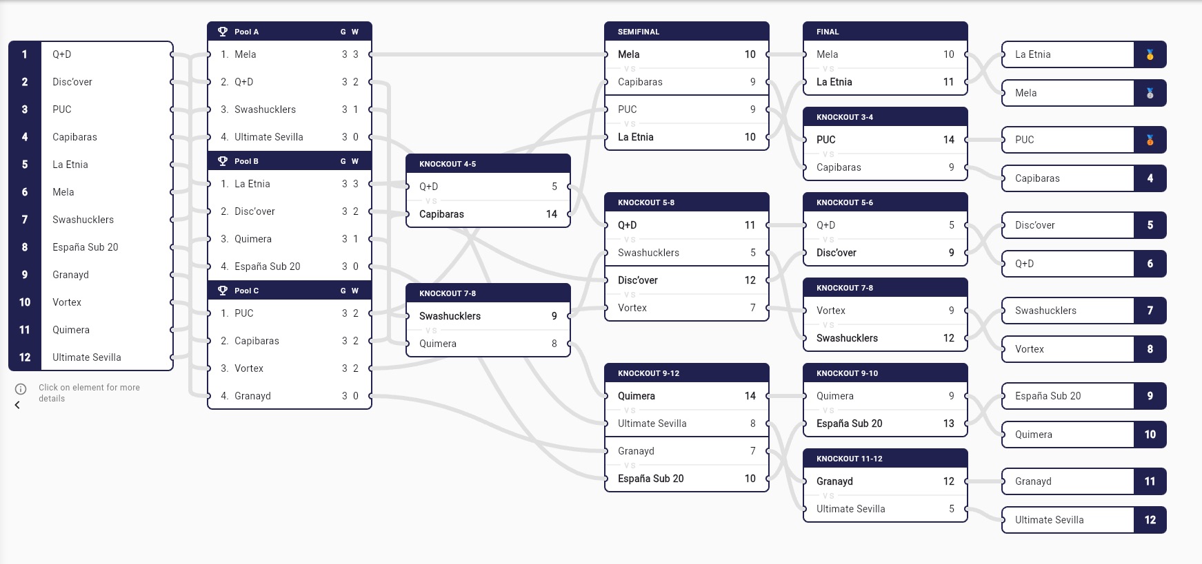 Resultados de Ultimate.app: https://ultimate-tournament.app/#/tournament/YjIixdk8w8yJYPm2RtEX/division/Mq9Tof1wILNDg8xUeg9I